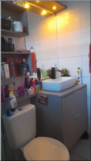 - Banheiro: Com móveis planejados.